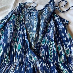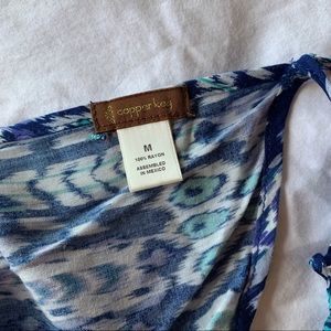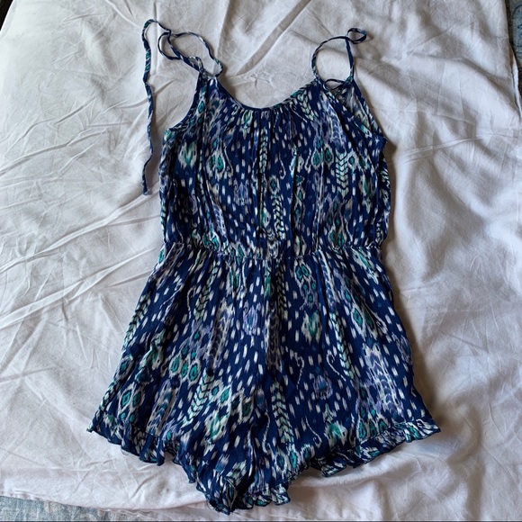 Copperkey size medium blue and white romper. This has an open back and ties in the back as well. Worn once so it’s in great condition! I think this piece runs a bit small.