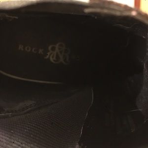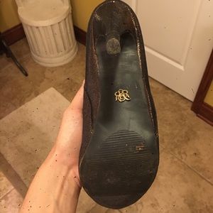 Rock & Republic coppery, sparkly, shimmery booties, sort of a black and brown color. Have a platform and elastic on the side for easy on and off. Worn once, maybe twice. A little too fancy for where I go! Perfect for upcoming Christmas parties!
