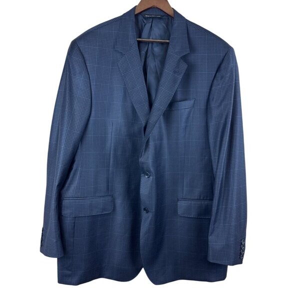 Coppley 1883 Men's Blazer 100% Wool Blue Black Check Two Button Lined Size 46