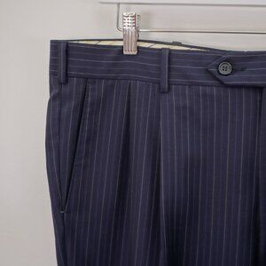 Coppley Vitale Barberis Canonico Super 130s Wool Gray 2 Piece Suit 42L 37 / 30 Striped Pleated Cuffed Lined High Rise Bocelli Jordan Padding / Constructed Shoulder
