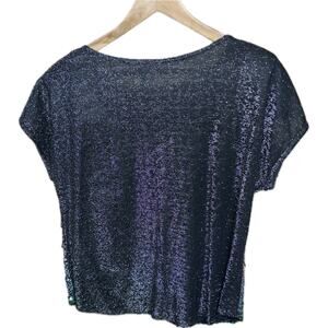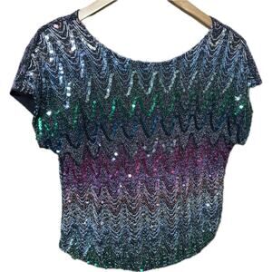 Copy Cats Vintage Sequin Rainbow Retro Disco Short Sleeve Blouse Women Large
