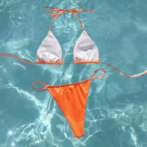 New with tags! Work some pink into your vacay wardrobe with this bikini set. Featuring an orange latex fabric on the outside with soft fabric to touch the skin & added pads on the inside. Refer to pictures for measurements. Packaged with care đź’–