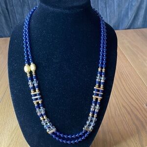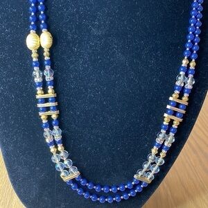 Copy - Vintage Royal Blue & Gold beads. Great look, double strand lays flat nec…