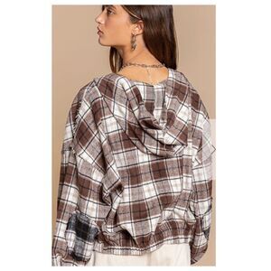 POL Chocolate Multi Plaid Hooded Bomber Jacket