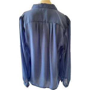 Copycats L blue pleated button up vintage 70s blouse women’s