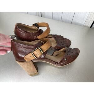 Coque Terra Anthropologie Heels EU 37 US 6.5 Brown Leather Studded Distressed