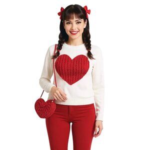 Wrap yourself in effortless charm with this soft and cozy heart cable knit sweater. Designed for all-day comfort, this pullover features a sweet heart design and a classic rounded neck, making it a perfect staple for your romantic, feminine wardrobe. The breathable 55% cotton and 45% acrylic knit feels gentle on your skin while providing comfortable warmth for any season.