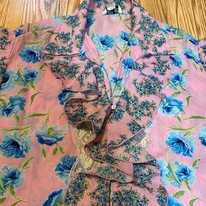 Coquette Blouse, Robbie Bee Floral Top, blue, pink, 16W