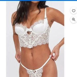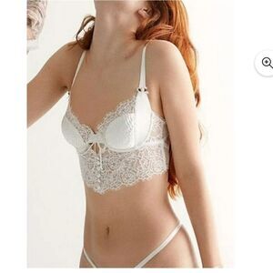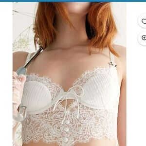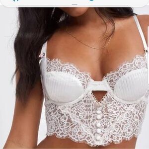 Coquette Bralette Rosebud Appliqué Satin Lace White Lana