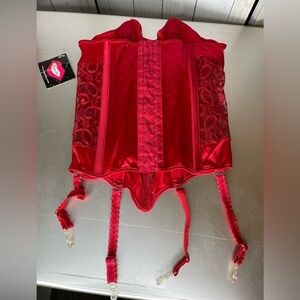 Coquette Corset Red Lingerie Boned Lace Ruffle Adjustable Boustier Medium