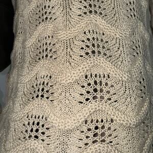 Coquette Cream Knit Crewneck Ruffle Mesh Trim Sweater, Semi Sheer, Mystree brand, Sparkly Fabric, 1/2 sleeves, 20% cotton 80% acrylic, Size Small, Good Condition a few small flaws to mesh