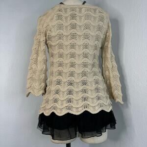 Coquette Cream Knit Crewneck Ruffle Trim Sweater Mystree Small
