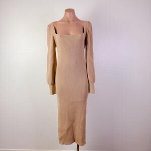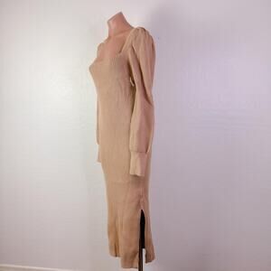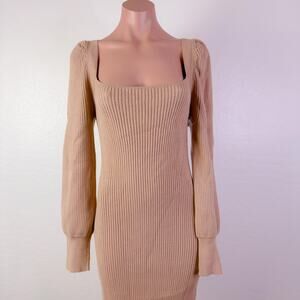 Charles Henry Square Neck Tie Back Knit Puff Long Sleeve Sweater Dress Tan Size Large NWT