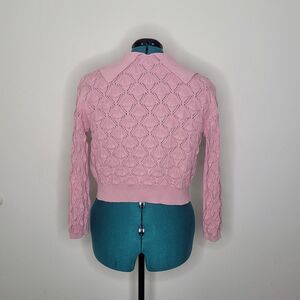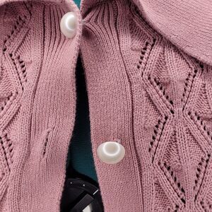 Coquette Romantic Academia Feminine Cable Knit Puritan Collar Pearl Buttons Sz M