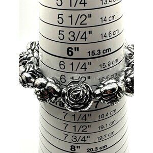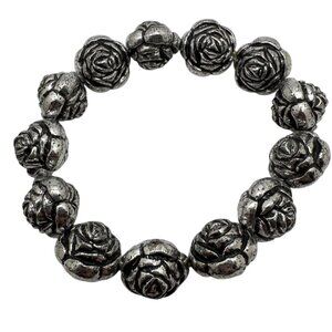 Coquette Rose Antiqued Silver Bead Bracelet Acrylic Flower Floral Granny Sweet