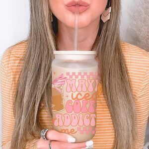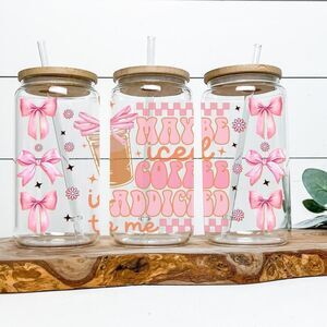 Coquette Funny Iced Coffee Is Addicted To Me Libbey,Girly Bow Sarcasm Quote Glass Can,Gift For Her,Sassy Humor,Latte Lover,16oz Sipper Glass