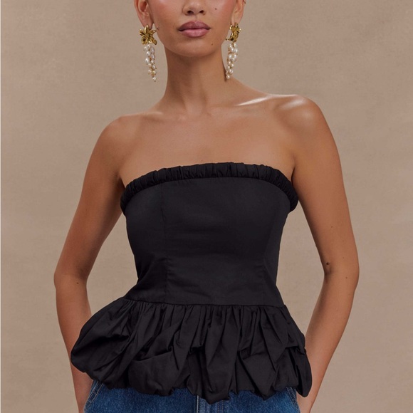 The CORA Ruched Strapless Top is a chic and flattering addition to any wardrobe. Designed with a strapless silhouette, it features a stretchy elastic neckline for a secure, comfortable fit. The bubble peplum adds a playful touch, while the fitted body enhances your natural shape for a sleek, feminine look. Fully lined for added comfort and structure, this top is perfect for dressing up or down, making it a versatile piece for day-to-night wear.