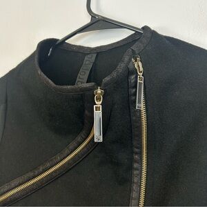 Coragroppo Black Wool & Leather Cowl Neck Multi Zipper Jacket Size Small