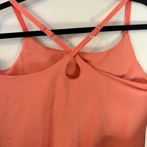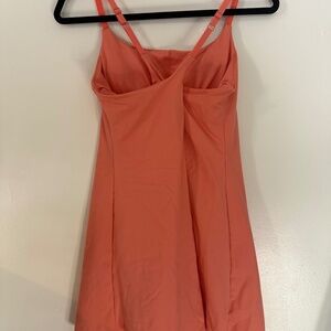 Features: Cross-back straps, built in bra, built in shorts, athletic material