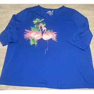 Coral Bay 3X Novelty Christmas Holiday Flamingo Holly Ugly Sweater Comfy V-Neck