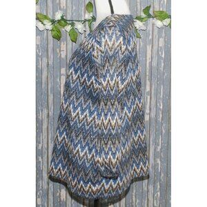 Coral Bay Blue & Brown Chevron Print Blouse Top Size L Sheer Lined 3/4 Sleeve