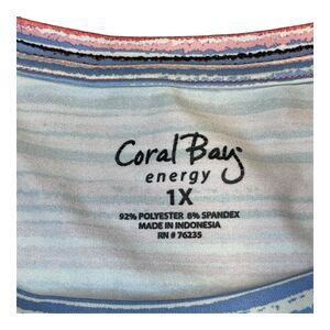 Coral Bay Energy Shirt Women's 1X Multicolor Striped Polyester Stretch Pullover
