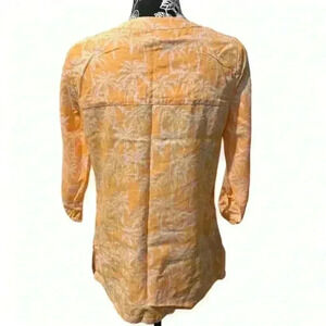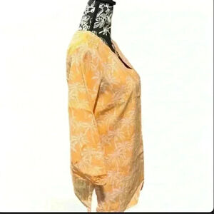 🌴 Coral Bay Golden Yellow/White Linen Palm Tree V-Neck Blouse-Women’s Small🌴