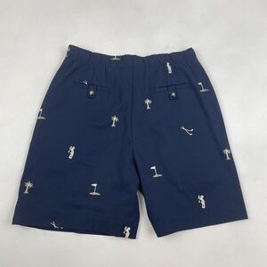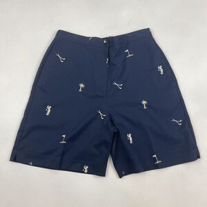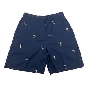 Coral Bay Golf Navy Shorts Sz 6 Embroidered Clubs Palm Tree Flat Front Stretch