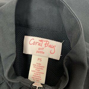 Coral Bay golf women’s zip up black jacket with pockets. Size petite small. Has vent in back.