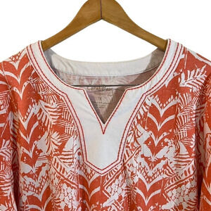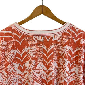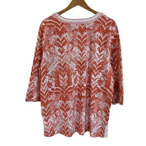 Coral Bay Leaf Pattern Top Plus Size 1X Embroidered V Neck 3/4 Sleeves Pullover