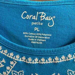 Coral Bay Petite Ladies , Size Petite Large, Blue with White Embroidered Trim
