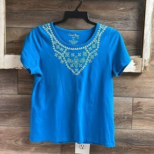 Coral Bay Petite Ladies , Size Petite Large, Blue with White Embroidered Trim