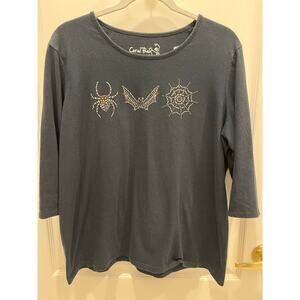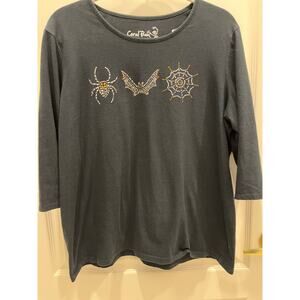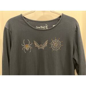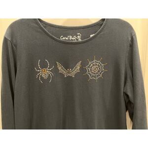 Coral Bay Rhinestone Bat, Spider, and SpiderWebb Black LS Halloween Tee Sz XL