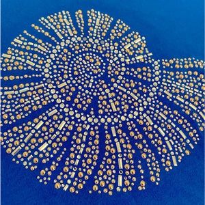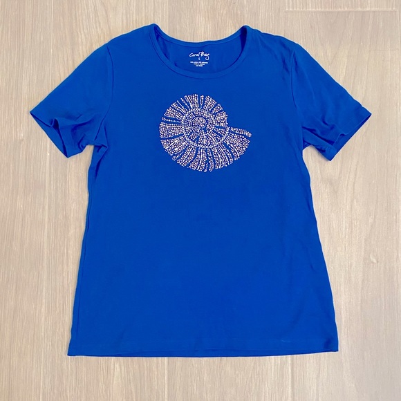 Royal blue short sleeve comfortable tee with beautifully gold beaded shell design on front. Excellent preowned condition Size S