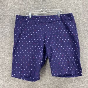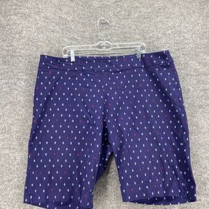 Coral Bay Shorts Women 3X Plus Blue Geometric High Rise Flat Front Chino Pull On