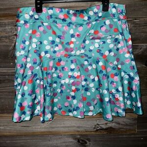 Coral Bay Skort- large - light teal with red pink and blue pika dots UPF 50 Polyester Three pockets