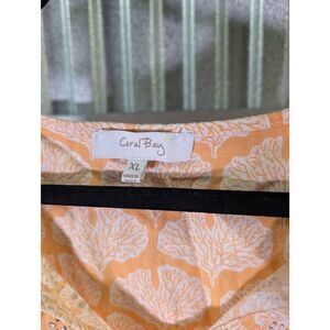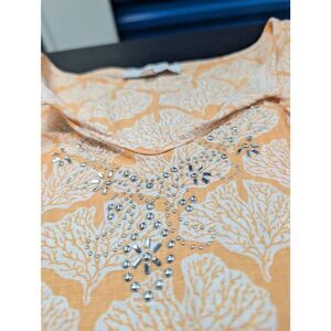Coral Bay Sleeveless Orange/peach Color with Beaded V-Neck Linen Top Women's XL