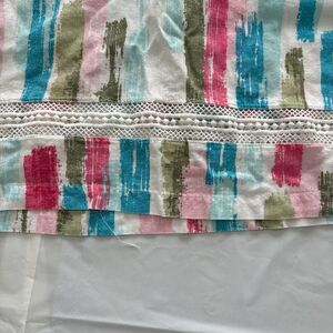 Coral Bay Tank Top. Crochet detail around v-neck and around bottom (1"). Multi-colored. Size Large. Approx. measurements: pit to pit 21", shoulder to bottom hem 26". Excellent preowned condition. No flaws, rips, stains.