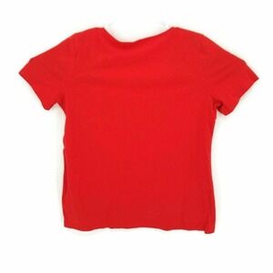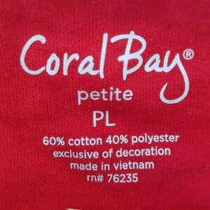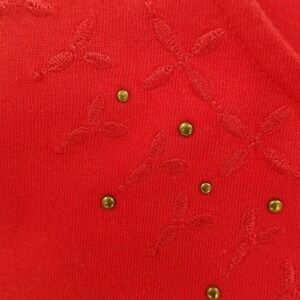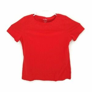 Coral Bay Womens Blouse Red Short Sleeve Crew Neck Embroidered Studded Petites L