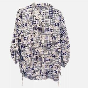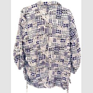 Coral Bay women’s shirt, polka dot blouse, roll-tab sleeve top, casual button-up shirt, ruched blouse XL