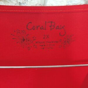 Coral Bay Womens Top 2X Plus Tee Short Sleeve Red Blue Studded Asymmetric RED27E