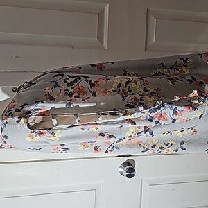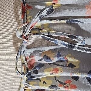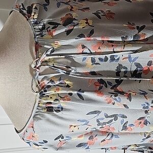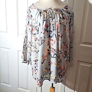 Coral Bay, women's 2X blouse. Gray with lovely yellow and coral flowers.