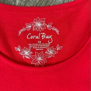 This listing is for a NWT's Coral Bay Christmas Top in size 1X. The top is red with the saying "Baking Spirits Bright", 3/4 length sleeves. Please see photos for measurements.