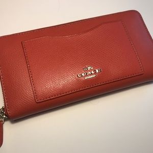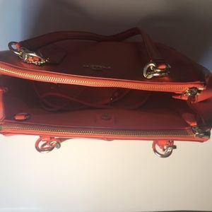 This coral Coach purse comes with the matching coral wallet. This is a great summer bag! You can wear it on your shoulder or cross-body. Detachable strap is included.