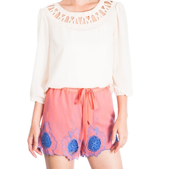 Coral Cobalt Embroidered Lace Shorts Size S M L