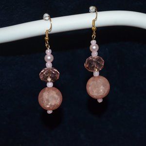 Coral Colored Faceted Beaded Hanging Earrings