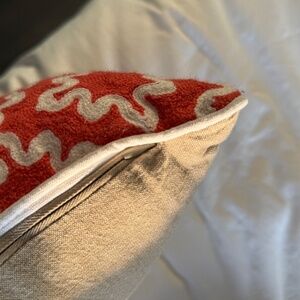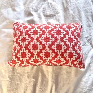 Elevate your space with this coral crochet throw pillow, featuring a unique white star pattern that adds a stylish touch to any room.