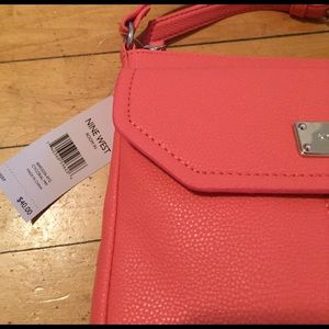 Nine West coral crossbody bag with adjustable strap. Front pocket that snaps. Inside has small zipper pocket and 2 other small pockets. Size is about 8.5" by 9". New with tags!