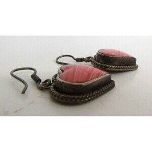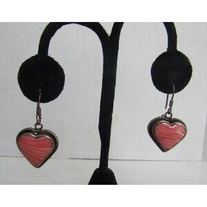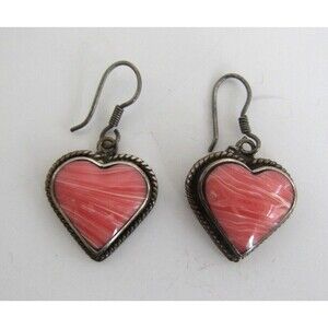 Coral Dangle Earrings Sterling Silver Vintage 925 Stamped Mexico Heart Shaped