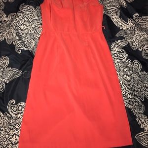Coral looking color! Love this dress, very comfortable and stylish! Misplaced belt. You can still wear it as is. Or you can add a belt